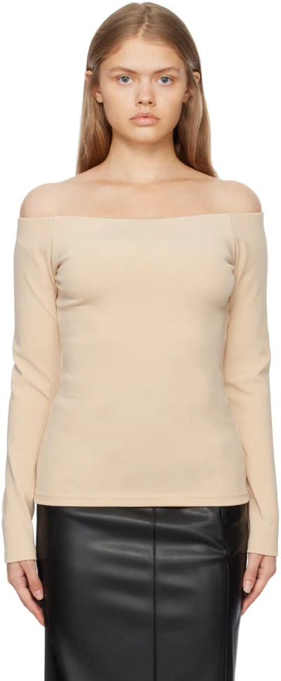 Ssense Exclusive Beige Off-the-shoulder Long Sleeve T-shirt In Putty