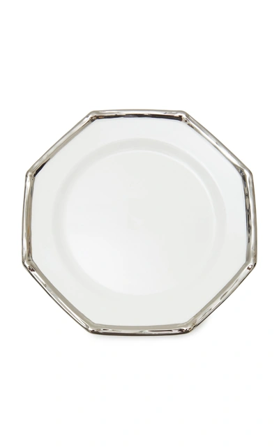Set-of-four Bamboo-trimmed Ceramic Dinner Plates In Silver