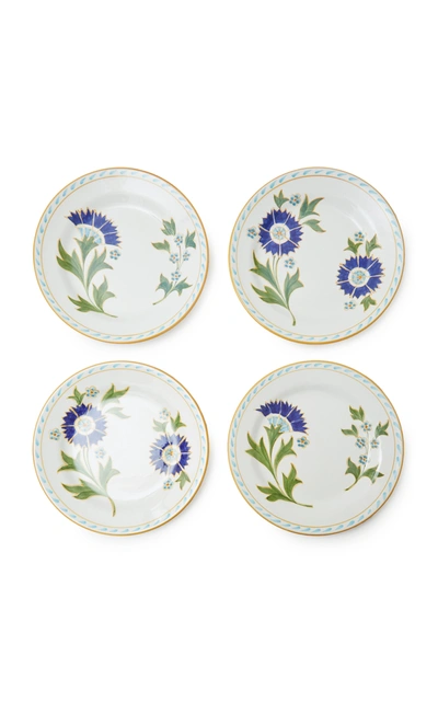 Set-of-four Printed Ceramic Dessert Plates In Blue