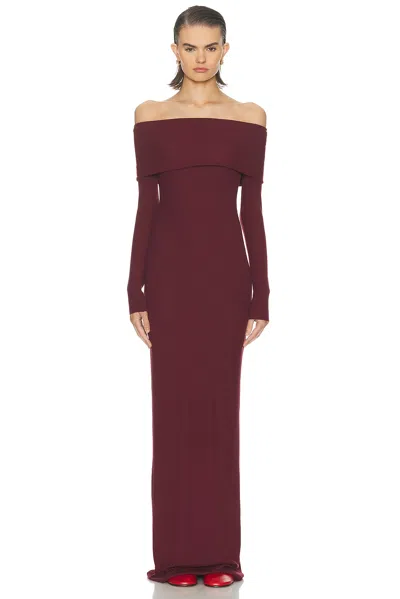 Long Sleeve Off Shoulder Maxi Dress In Brown