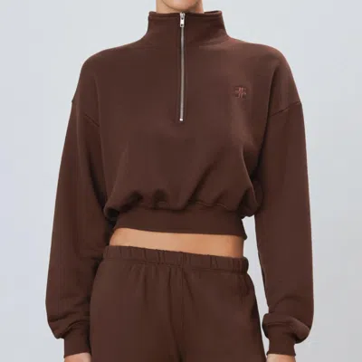 Cropped Half-zip Sweatshirt In Chocolate In Brown