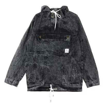 Men's Denim Anorak Removable Jacket In Black Acidwash