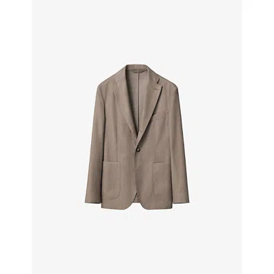 Mens Beige Flannel Tailored-fit Wool Jacket In Nude