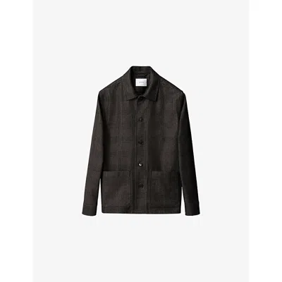 Mens Dark Grey Check Wool-cashmere Chore Jacket Xl In Black