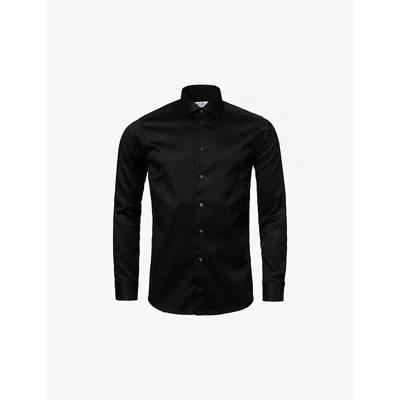 Mens Cutaway-collar Single-cuff Slim-fit Cotton-twill Shirt Black