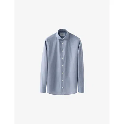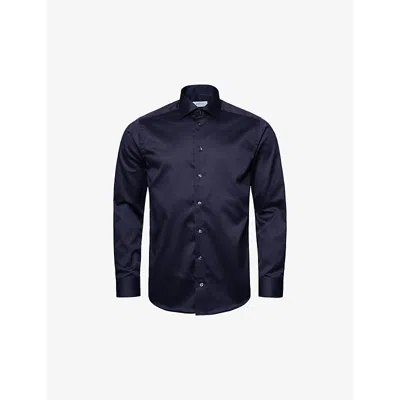 Mens Navy Blue Cutaway-collar Single-cuff Slim-fit Cotton-twill Shirt