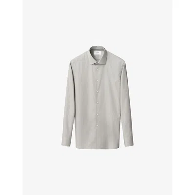 Mens Light Green Signature Slim-fit Cotton-twill Shirt In Gray