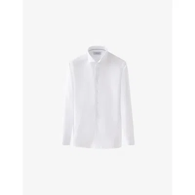 Mens White Solid Signature Slim-fit Cotton Twill Shirt