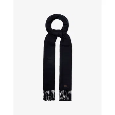Mens Navy Blue Fringed Two-face Cashmere Scarf