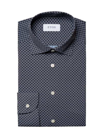Men's Contemporary-fit Geometric Twill Shirt In Blue