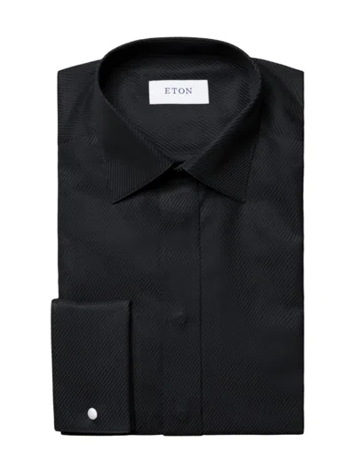 Men's Slim-fit Bib-striped Jacquard Shirt In White
