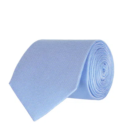 Mens Light Blue Geometric-pattern Silk Tie
