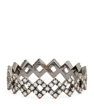 Blackened White Gold And Diamond Xx Ring In Metallic