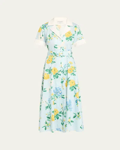 Clara Belted Floral-print Midi Shirtdress In Blue Multi