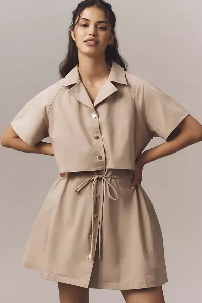 The Tobie Organza Mini Shirt Dress By In Brown
