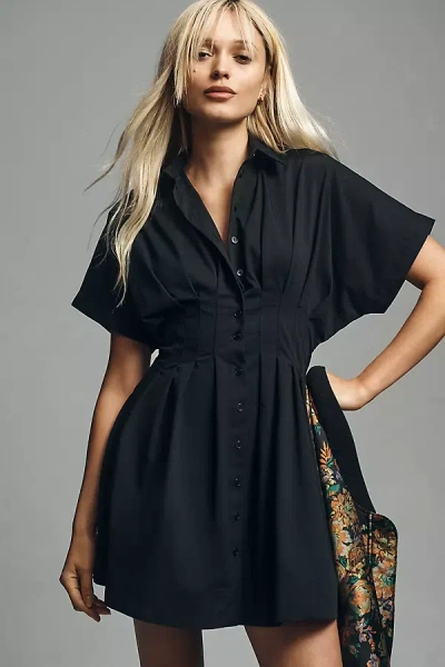 The Tobie Button-front Pleated Shirt Dress By : Mini Edition In Black