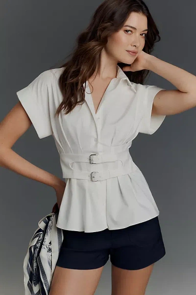 The Tobie Pleated Blouse By : Double-buckle Edition In White