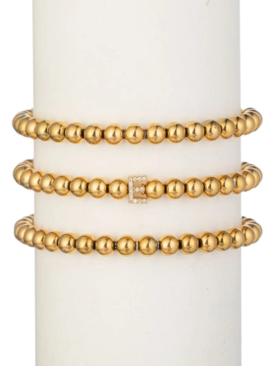 Women's Luxe Collection 3-piece Initial Goldtone Beaded & Cubic Zirconia Bracelet Set In Letter E