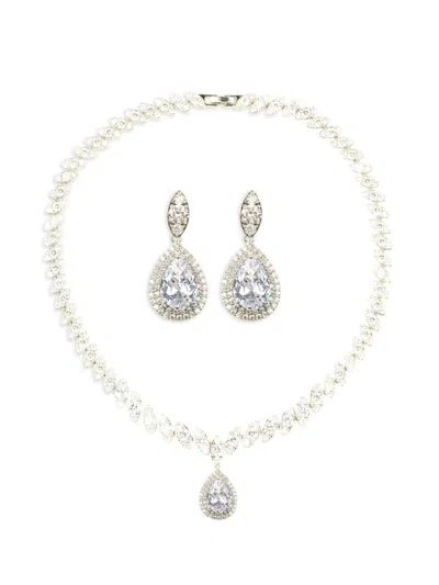 Women's 2-piece The Luxe May Silvertone & Cubic Zirconia Necklace & Earrings Set In Brass