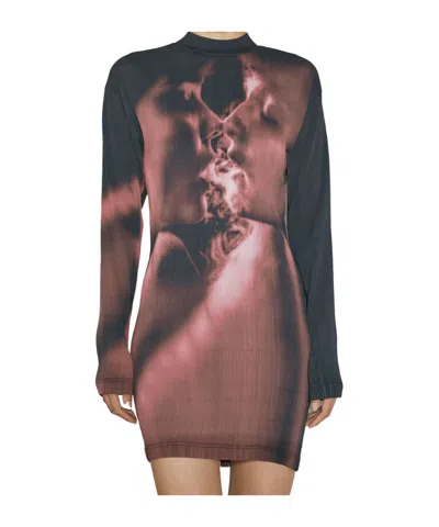 Rhye Pleated Graphic-printed Mini Dress In Brown