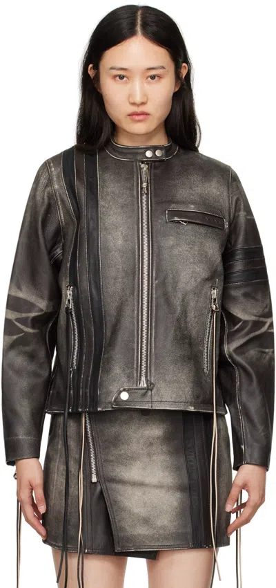 Ssense Exclusive Brown Damon Leather Jacket In Brown Stripe