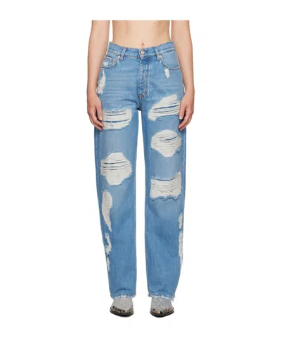 Denim Trousers With Belt Loops In Multi