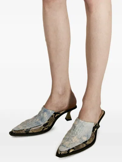 蛇纹皮质穆勒鞋