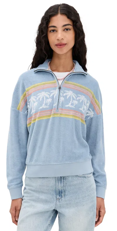 Cabana Towel Terry Quarter Zip Palm Rainbow Beach In Blue