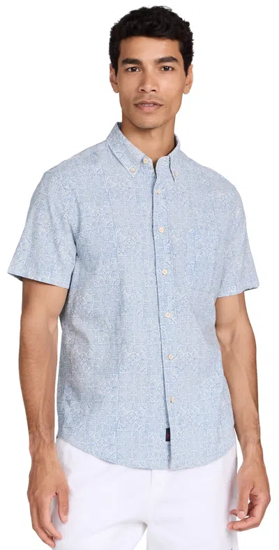 Short Sleeve Stretch Playa Shirt South Pacific Geo In Sky Blue Frond