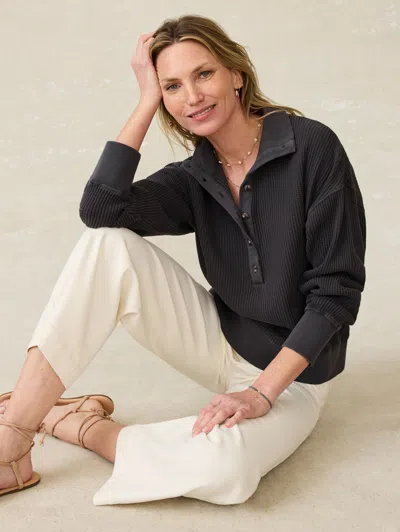 Surf Waffle Henley T-shirt In Washed Black