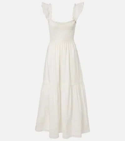 Shirred Cotton Maxi Dress In White