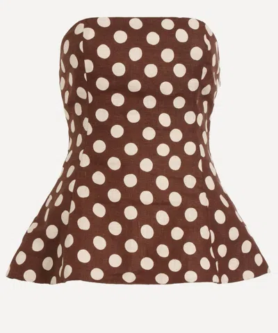 PETRO波点无肩带亚麻上衣