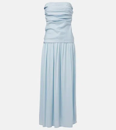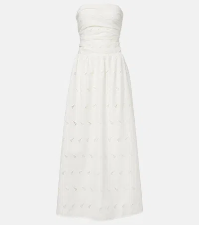 Hedy Strapless Gathered Linen And Voile Maxi Dress In Multi