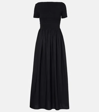 Shirred Off-shoulder Cotton Maxi Dress In Schwarz