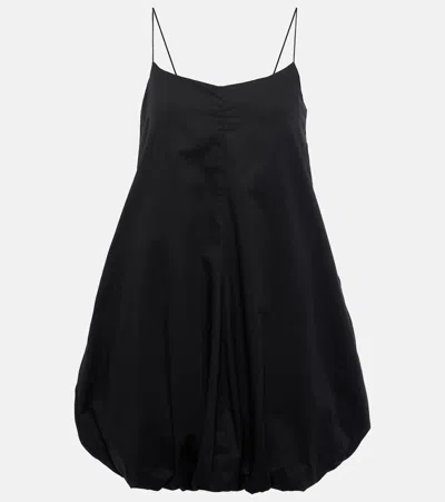 Shirred Cotton Minidress In Black