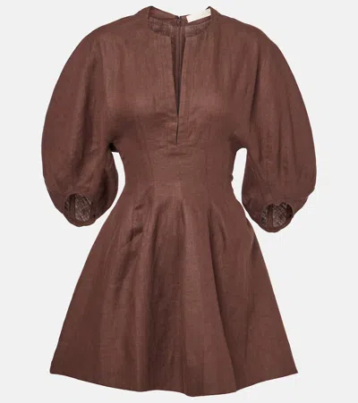 Puff-sleeve Linen Minidress In White