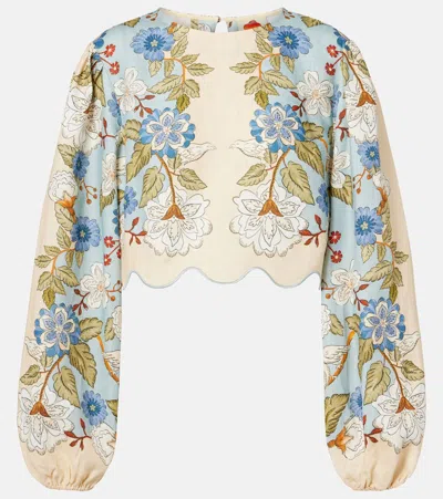 Womens Porcelain Garden Red Porcelain Garden Crop Linen Blouse Xs