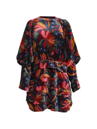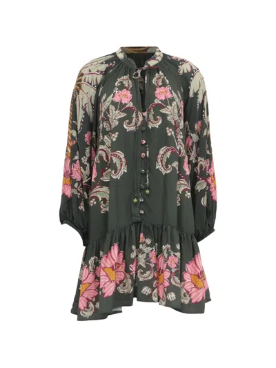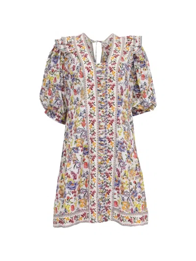 Pre-owned Tropical-print Puffed Sleeve Mini Dress In Neutral