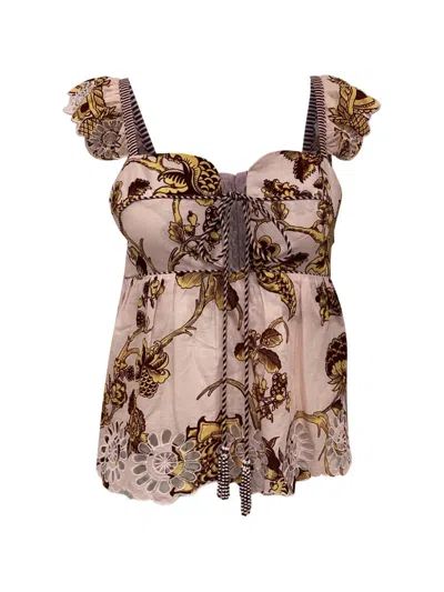 Pre-owned Floral-print Sleeveless Blouse In Pink