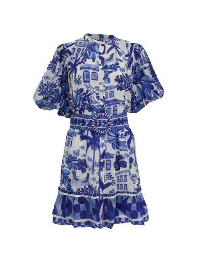 Pre-owned Tie-strap Print Mini Dress In Blue