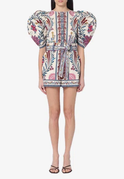 Belted Printed Cotton-poplin Playsuit In Multicolor