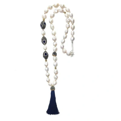 Irregular Freshwater Pearl Rhinestone Tassel Necklace