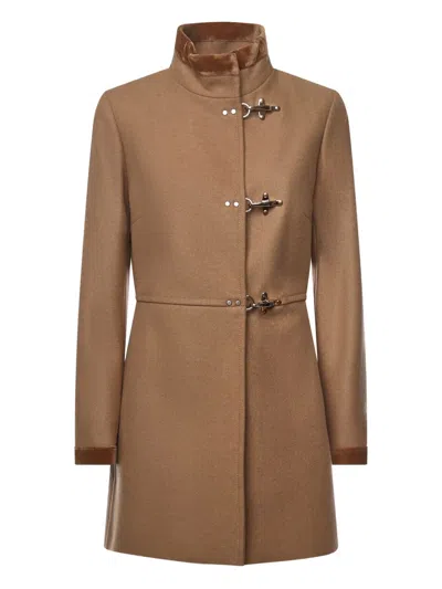 Coat Brooch Detail Velvet Collar Cuffs In Neutral