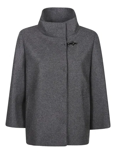 High Collar Long Sleeve Jacket Design In Gray