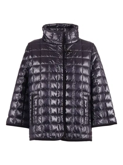 Tailored Cape With Stand-up Collar And Hidden Closure In Blue