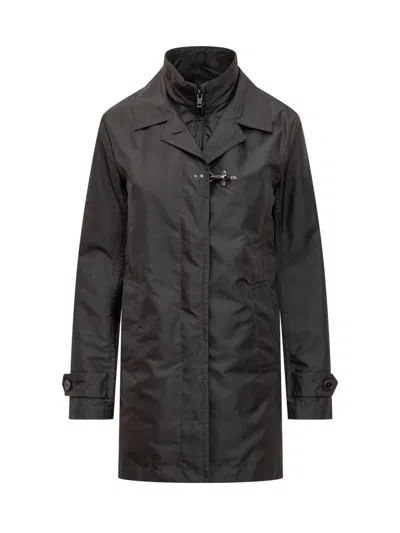 Cropped Black Nylon Down Jacket With Iconic Fastening And Windproof Cuffs