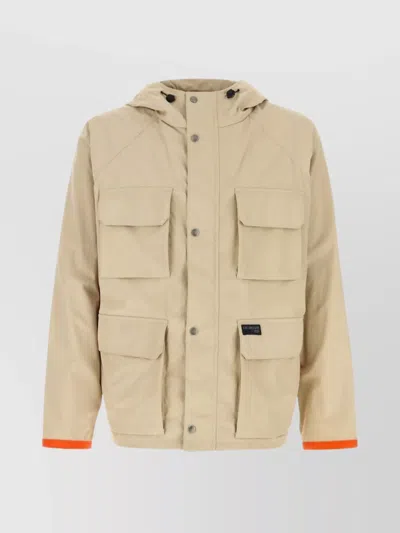 Nylon Windbreaker With Hood And Pockets In Beige O Tan