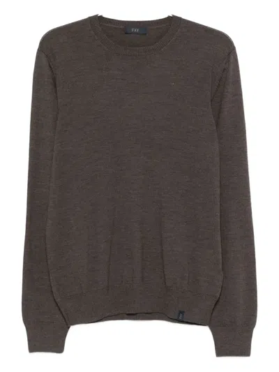 Fine Wool Crew Neck Long Sleeve Sweater In Gray