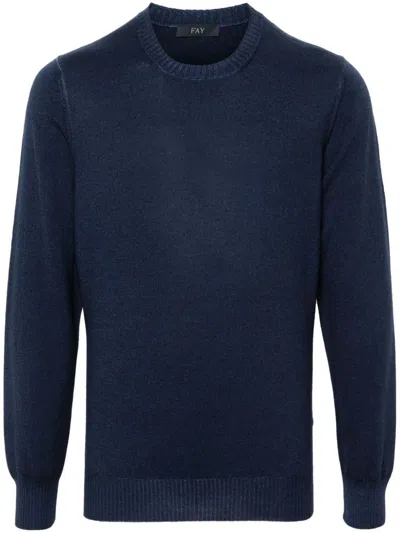 Refined Crew Neck Sweater In Deep Navy Wool In Blue