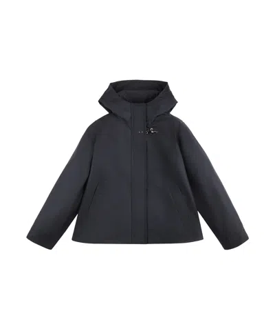 Hooded Parka Coat Drawstring Hem Pockets In Blue